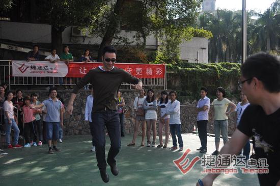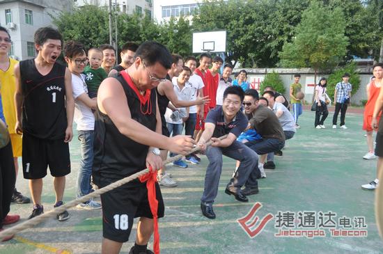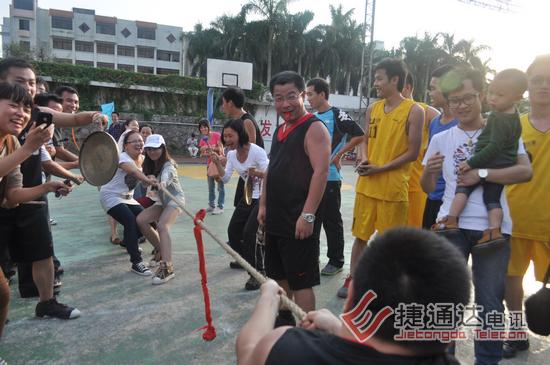捷通达电讯副总经理马英亲临现场,与员工们一起开展了跳长绳和拔河比赛。在拔河环节,马总与信息中心代总、运营中心郭总、人力资源杨总,以及营销中心张总,五人组成的老总队,与自发组队的15名女员工,现场PK,最终,女员工们团结一心、努力拼搏,顽胜老总队。
