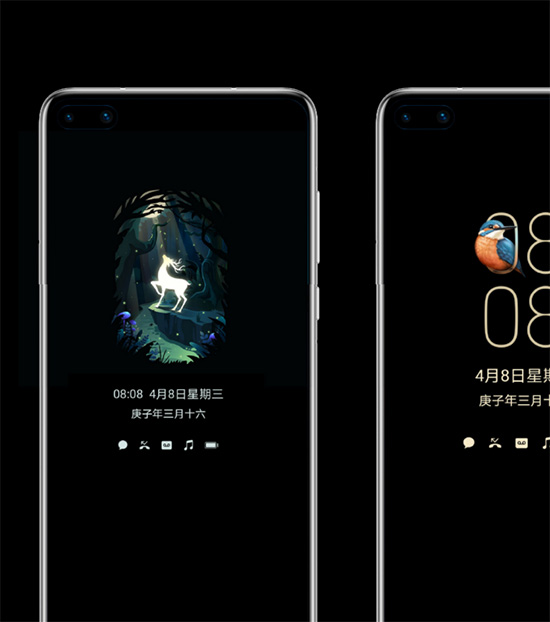 EMUI 10.1引入了微立体AOD,通过前景层,数字层,背景层三层叠加的设计,营造出了前后立体景深的3D视觉感,同时,还有更多在线AOD主题供你选择。