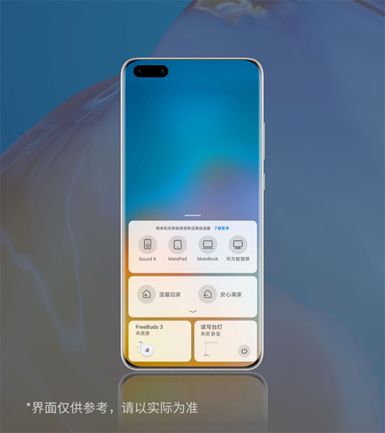 EMUI 10.1上新增创新交互方式—多设备控制中心。从屏幕左下角或右下角向上滑动,激活多设备控制中心,可以实现智能设备间的协同,当你在手机上看视频、听音乐或畅连通话时,系统智能推荐附近设备,一键切换,跨设备接续任务。