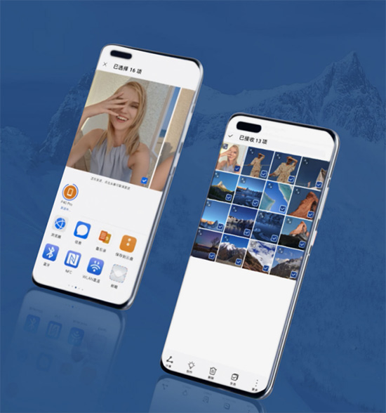 华为分享可以在华为设备间进行文件传输,无需使用流量。在EMUI 10.1中,华为分享的平均传输速度最高可达160MB/s,相当于一分钟传输2000张高清照片或500首无损音质歌曲。