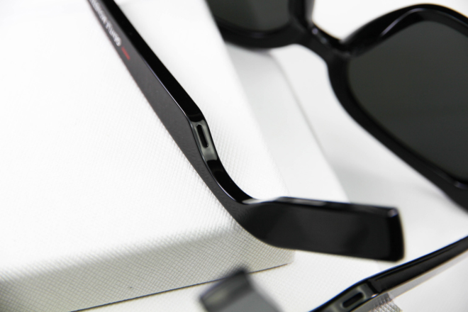 整个镜腿本体无任何按键与接口,仅能看到左右各一个外放音喇叭孔洞。此外,Eyewear还支持IP67级别的防水能力。