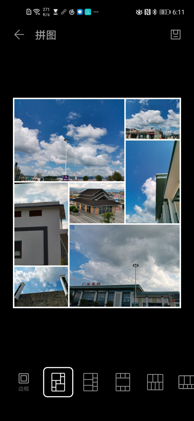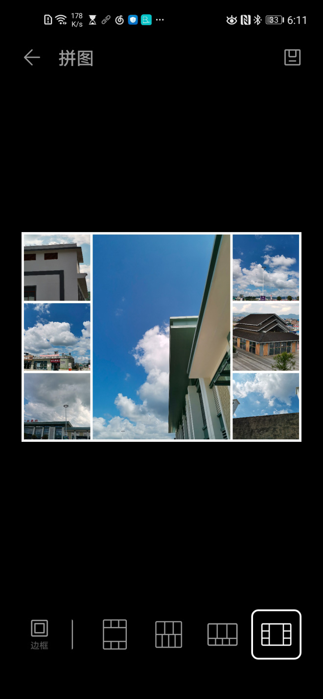 华为图库拼图功能,通过算法将裁减量最小的模版推荐给用户,并且根据算法为每张图片选择最合适的宫格位置,优化人像构图、优化物体构图,在不减照片数量的同时增高美学质量。