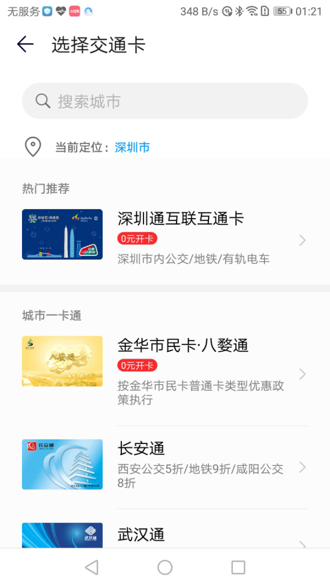第三步:选择需要开卡的城市(以深圳为例)。