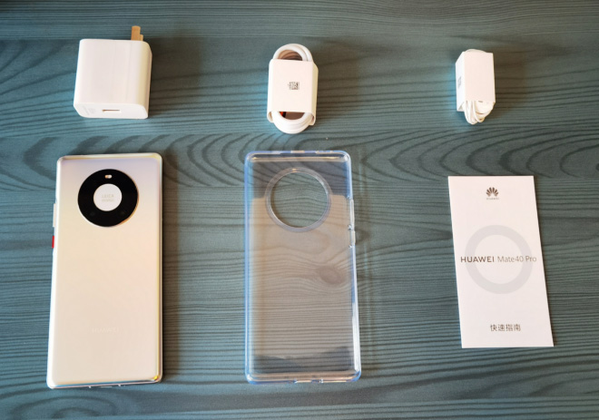 开箱过程就不详细说了,这次华为Mate40 Pro的主要配件有透明硅胶壳,充电头,数据线,说明书和耳机等。基本上该有的都有,并不需要另配充电头和耳机,甚至买手机硅胶壳的钱都省了。而站在苹果的层面上来评价的话,嗯,这很不环保(笑)。