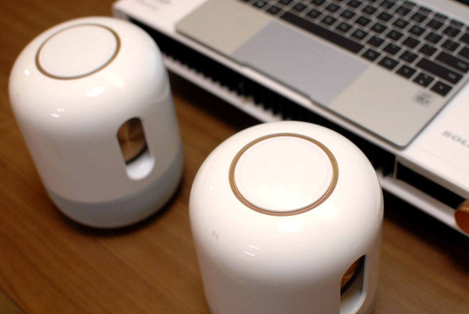 因为家里的那套是黑色,所以这次我拿的是白金色,虽然两款配色各有千秋,但不得不说白金色个人觉得更符合(Devialet)帝瓦雷的气质,当然也更高端大气上档次,大家觉得呢?体积方面比Sound X小了一大圈,毕竟在扬声器单元配置上少了一半,所以个人觉得这套中杯产品更符合桌面HIFI的定位,而Sound X则更适合与电视机搭配。