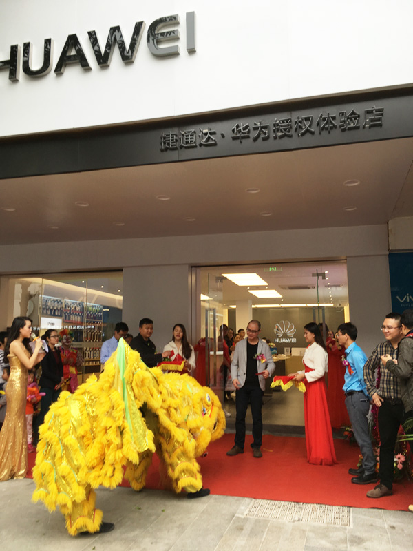 伴随一阵锣鼓喧天,舞狮队热闹表演,捷通达电讯东莞清溪华为官方授权体验店开业盛典由此拉开了序幕。