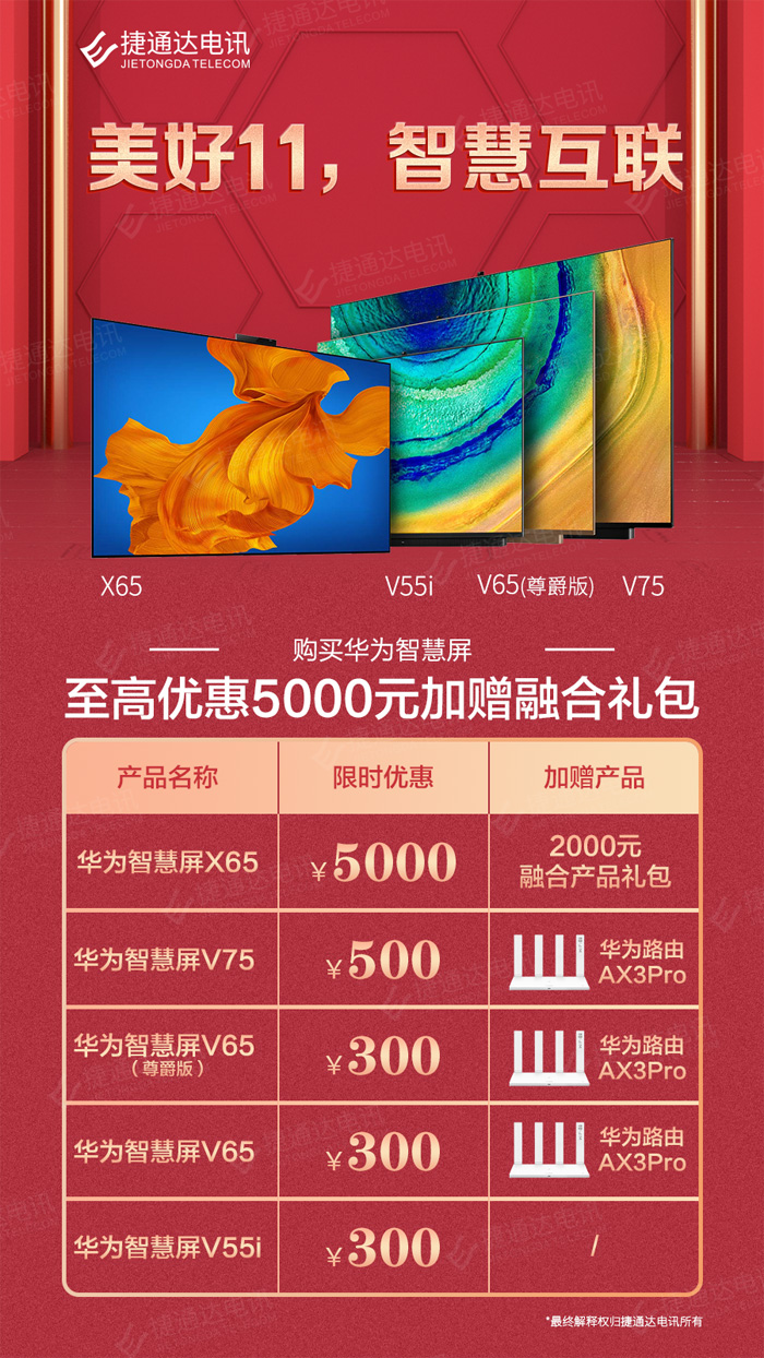 华为超级双11购,至高优惠5000元加赠融合大礼包