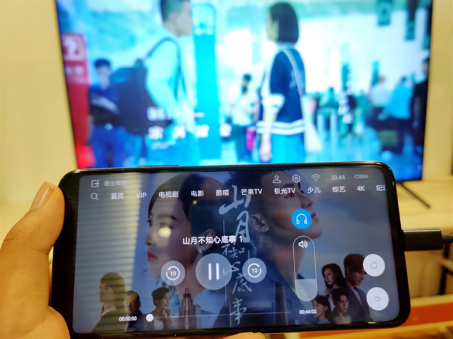 可在手机上打开耳机模式,智慧屏的声音便只从手机发出,若手机上连接了耳机,声音便从耳机发出,这功能对于喜欢夜晚看球、追剧的用户来说真的很香,再也不用担心晚上看球打扰家人了。