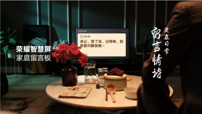 我们还可以通过华为手机在荣耀智慧屏的留言板上进行留言,让我们的温馨、浪漫和关怀时刻围绕在家人身边。