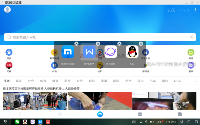 类windows体验,通过ALT+TAB,也可以启用window类似的多任务界面!多次点击切换不同的应用。