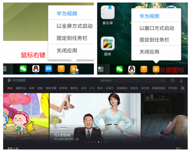答:为了提升用户体验,PC模式设计了2种多任务启动方式: