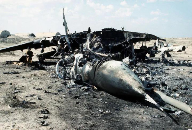 美军隐身战斗机携带着精确制导的穿甲炸弹,撕裂了巴格达内的防控系统;战斧巡航导弹划过天际线,伊拉克地面引导系统也被摧毁。仅仅一天时间,失去指挥的伊军战机就像无头苍蝇般横冲直撞,被全面掌握战场信息的美军精准打击,毫无还手之力。米格29战斗机甚至还没有起飞,就被精确制导导弹炸毁。